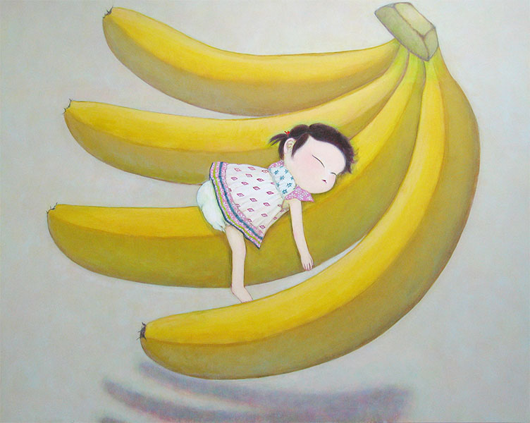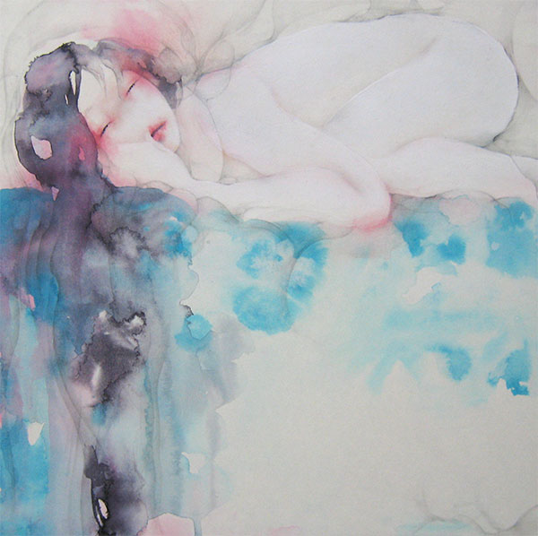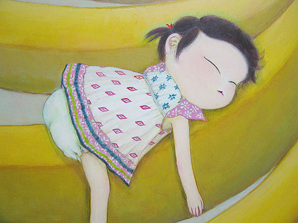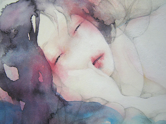 (そして静かに瞳を開ける) 502x730x24mm 油彩
