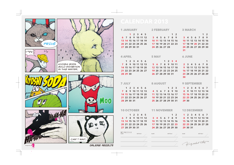 そだきよしカレンダー2013 25/11/2012 In みなさんごきげんよう.スタッフのUです. 毎回どんなDMにしようか楽しく頭を痛めるのですが、今回のそだきよし展のDMは、展示が楽しみ!という感じこめて原画を元にPOPにデザインしてみました 🙂 ご好評につきハガキの絵柄でA3サイズの2013年カレンダーを制作しました.作品を買っていただいた方にはもれなくプレセント!もちろんカレンダーだけでも300円で販売しています. お早めに! 箱入り 韓国美術展の展示写真