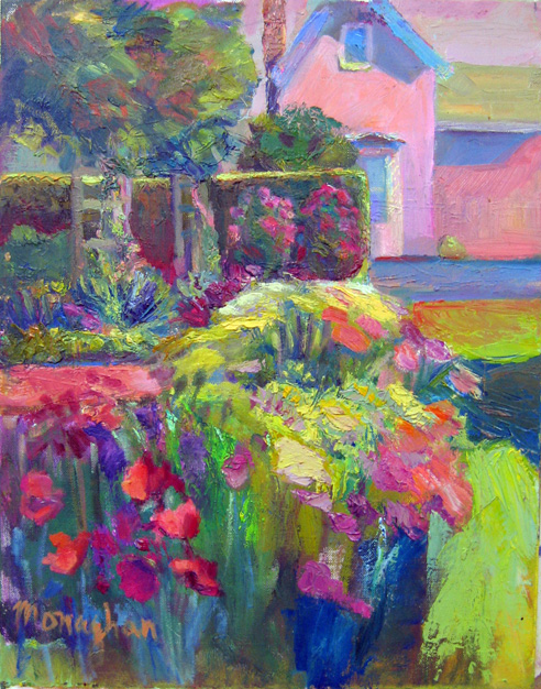 日向と日陰。子供たちはどっちも大好きだ。庭を手入れしているのはきっとおばあちゃんやお母さん。